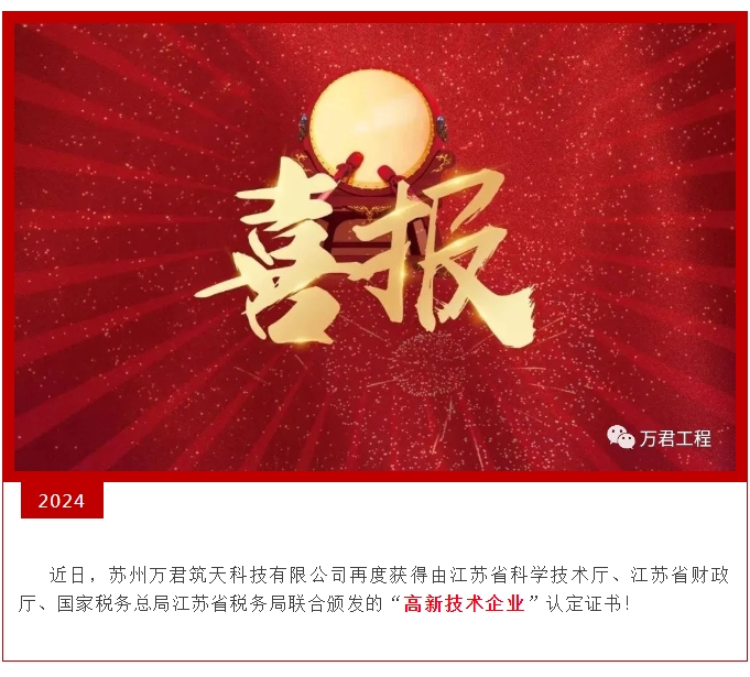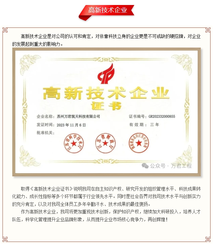 喜報!熱烈祝賀蘇州萬君筑天科技有限公司再度獲得“高新技術(shù)企業(yè)”認(rèn)證!