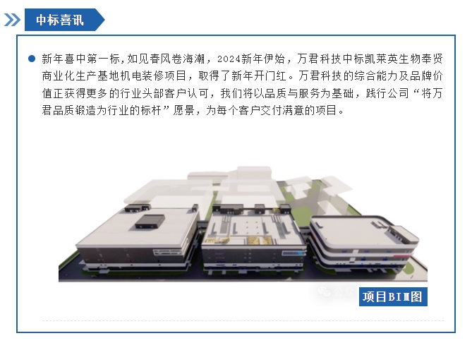 新年第一標(biāo),萬君科技中標(biāo)凱萊英生物奉賢商業(yè)化生產(chǎn)基地機(jī)電裝修項(xiàng)目